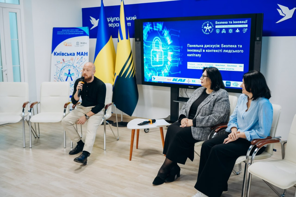 Панельна дискусія продовжилась третьою сесію за темою «Освіта наукового спрямування та науковий розвиток молоді для забезпечення інновацій в безпеці», спікерами якої виступили науковці відділення безпеки та оброни Київської МАН:
