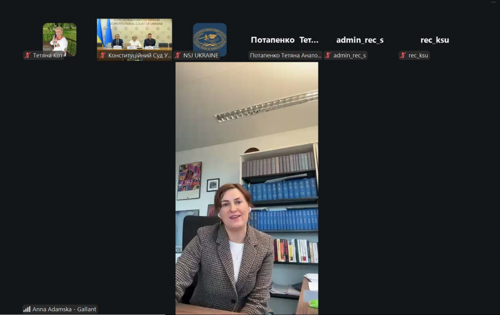 У своєму виступі пані Анна розповіла про головні етапи створення, розвитку та становлення Конституційного Трибуналу Республіки Польща ‒ органу, на який покладено функції конституційного контролю. Про конституційну реформу 1997 року, яка значно посилила інституційну спроможність органу конституційної юрисдикції республіки Польща. Про організаційну структуру та повноваження Конституційного Трибуналу Республіки Польща, особливості призначення та звільнення суддів, вимоги до кандидатів на цю посаду, гарантії їхньої незалежності.