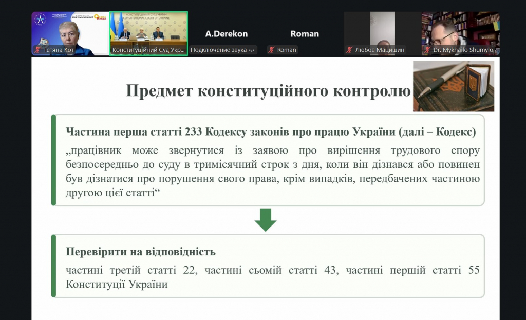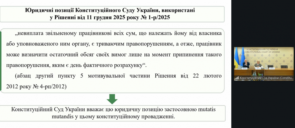 Чергову зустріч присвячено предмету конституційного контролю, визначеному в частині першій статті 233 Кодексу законів про працю України — «Строки звернення працівника до суду про стягнення заробітної плати та інших належних працівникові виплат» — у контексті Рішення Конституційного Суду України від 11 грудня 2025 року № 1-р/2025.
