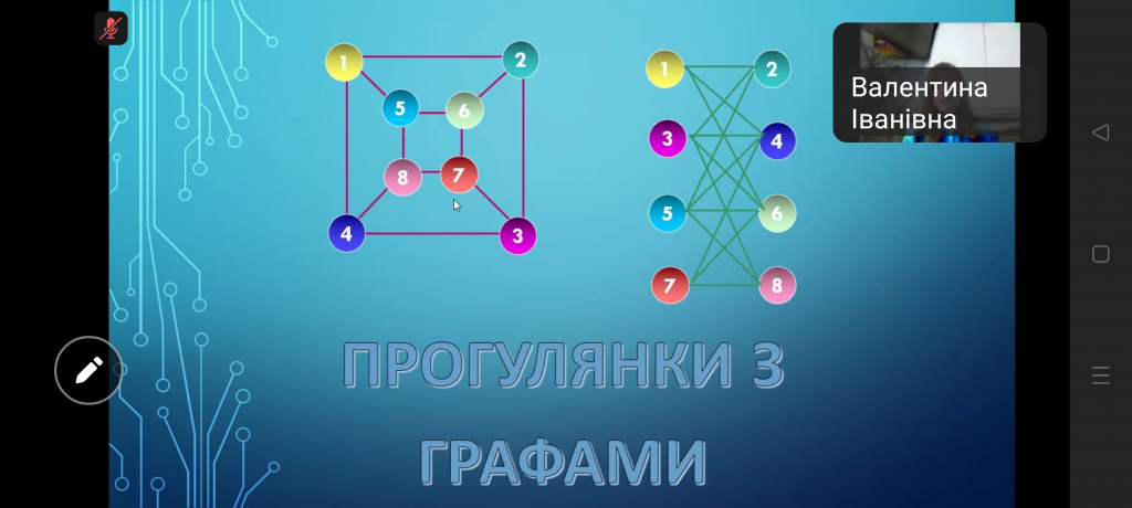 Під час прогулянок з графами юні учасники мінікурсу відкрили для себе поняття графів (малюнки (геометричні конфігурації), які складаються з точок і ліній, що з'єднують ці точки). Пробували зобразити «Шаблю Магомета» одним розчерком пера; та не відриваючи олівця від паперу, намалювати «розпакований лист».