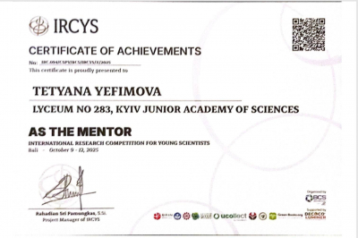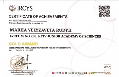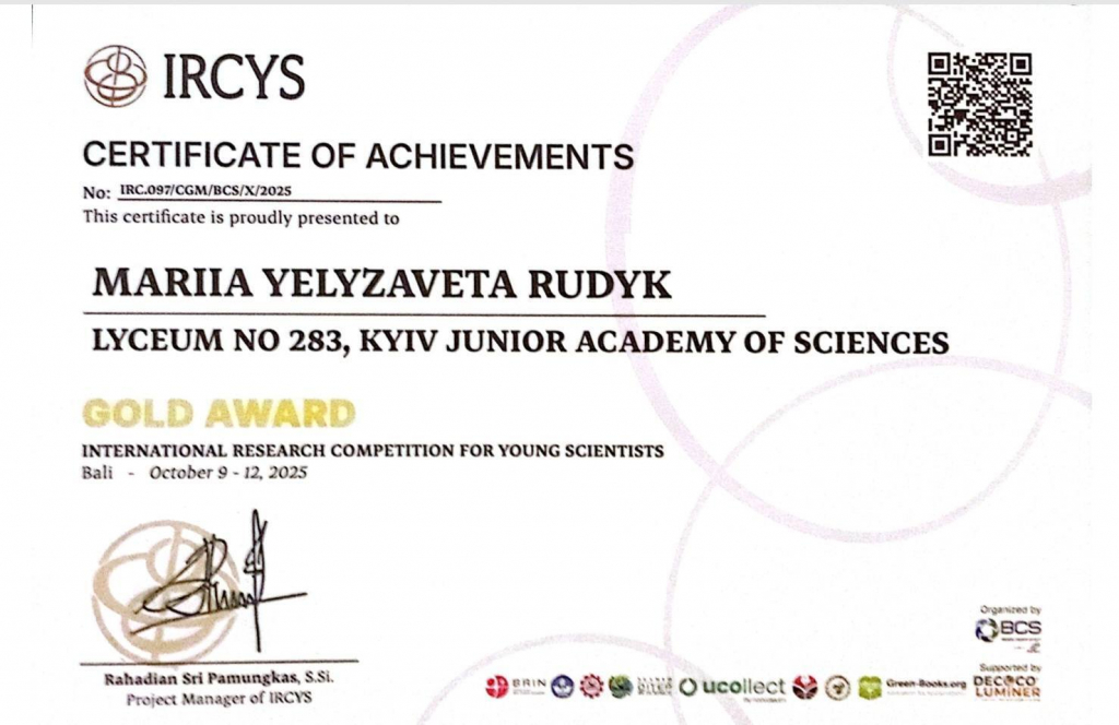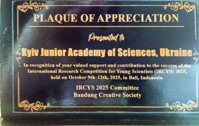 Київська МАН також була відзначена подякою від оргкомітету IRCYS 2025 за внесок у розвиток молодіжної науки.