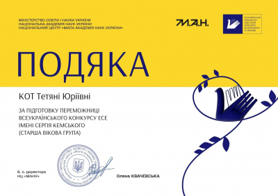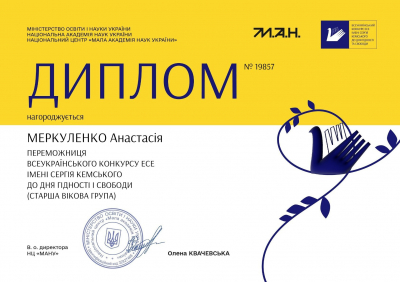 Перемога у Всеукраїнському конкурсі есе ім. Сергія Кемського