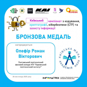 - Олефір Роман Вікторович, Полтавський політехнічний фаховий коледж НТУ "Харківський політехнічний інститут"