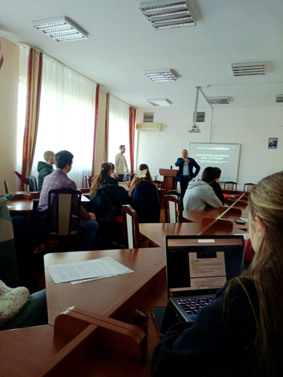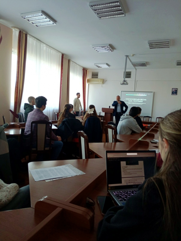 Приємним сюрпризом став виступ випускника відділення наук про Землю Київської МАН, нині асистента кафедри економічної та соціальної географії, доктора філософії з географії Тимофія Нагорного.