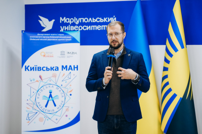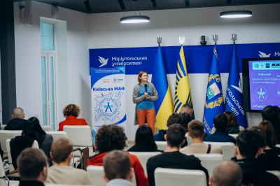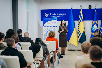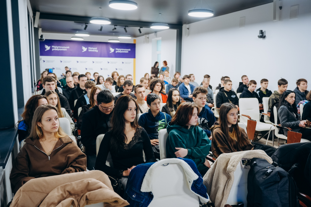 Фіналістів та їх вчителів, яких зібралось у залі вченої ради Маріупольського державного університету понад 150 осіб, привітали з початком чемпіонату: