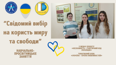 Навчально-просвітницьке заняття «Свідомий вибір на користь миру та свободи», присвячене вшануванню учасників бойових дій на території інших держав, відбулося в межах реалізації проєкту «Незламність — генетичний код українців» у системі заходів національно-патріотичного виховання відділення філософії та суспільствознавства тематичного блоку «Україна — країна можливостей».