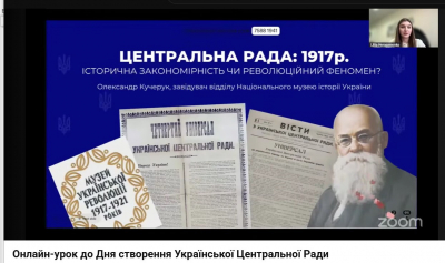 Завідувач відділу Національного музею історії України Олександр Кучерук розповів про діяльність Української Центральної Ради як першого представницького органу, що заклав основи українського парламентаризму та державотворення.