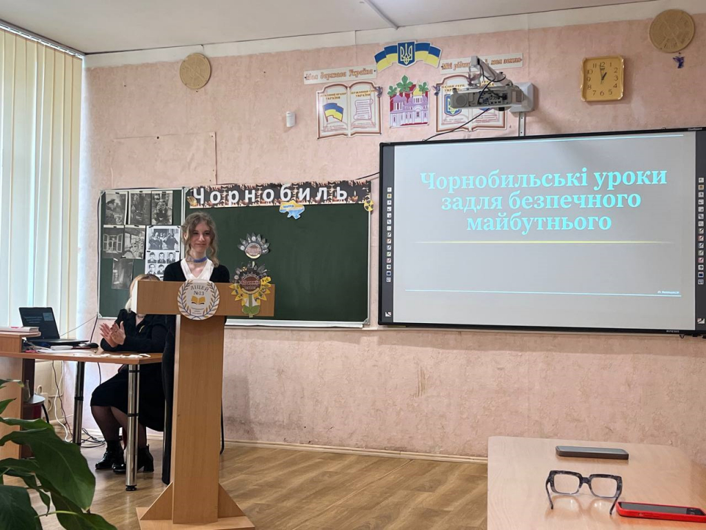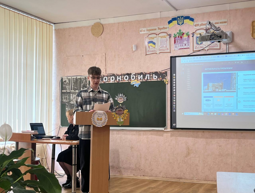 Вихованка секції педагогіки Софія Ткаченко, учениця 8 класу ліцею №13, у виступі «Чорнобильські уроки задля безпечного майбутнього» акцентувала увагу на значенні історичної пам’яті. Вона підкреслила, що трагедія Чорнобиля — це не лише сторінка минулого, а й важливий урок для людства, який спонукає до розвитку безпечних технологій і відповідального ставлення до довкілля.