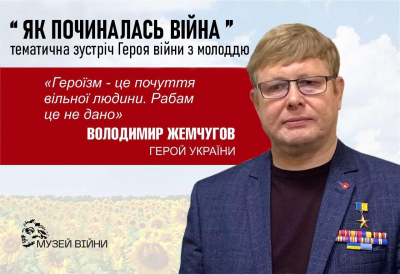 Захід об’єднав учнів, студентів, ліцеїстів і курсантів для живого діалогу з Героєм України Володимиром Жемчуговим – учасником російсько-української війни, підпільником на окупованій Луганщині, який пройшов полон і після визволення став відомим громадським діячем, промотором ветеранських ініціатив та військово-патріотичного виховання молоді.