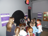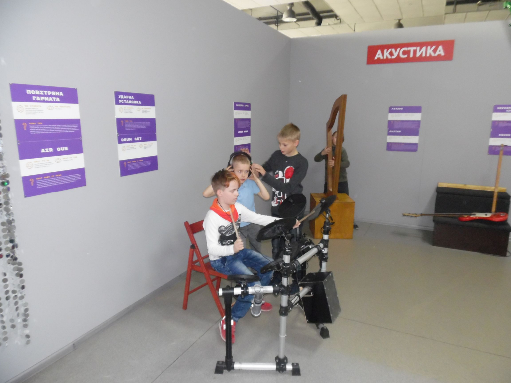 24 квітня юні науковці, які вчаться бути дослідниками, провели заняття в музеї науки і техніки «Експериментаніум». Це було класно – пізнавально, цікаво, весело! За годину екскурсії допитливі гуртківці познайомилися з будовою людського тіла і функцією його органів, побачили наочно, як рухається кров по малому і великому колам кровообігу; дізналися, як ми відчуваємо різні смаки – гіркий, солодкий, кислий рецепторами язика; виміряли втрату калорій при інтенсивних фізичних навантаженнях та рівень свого водного балансу; дізналися про властивості звуку та виміряли силу свого голосу; побачили, як утворюються хвилі та водяні смерчі, як засмоктує космічні тіла чорна діра; дізналися про експерименти Ніколи Тесли та відчули напругу плазмової кулі; побачили, як за допомогою системи блоків можна підняти нагору великі вантажі; спробували пройти через систему перепон у лазерному лабіринті та знайти вихід в лабіринті дзеркальному і ще багато чого цікавого. А потім була година самостійних випробувань різноманітних пристроїв та експонатів музею. Оце було весело! Двох годин виявилося замало – залишали музей з великим жалем.