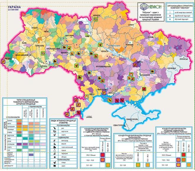 Завдання до карти: "Як змінюється спеціалізація сільськогосподарського товарного виробництва вздовж автотраси Київ - Одеса? Які фактори розміщення є вирішальними?"