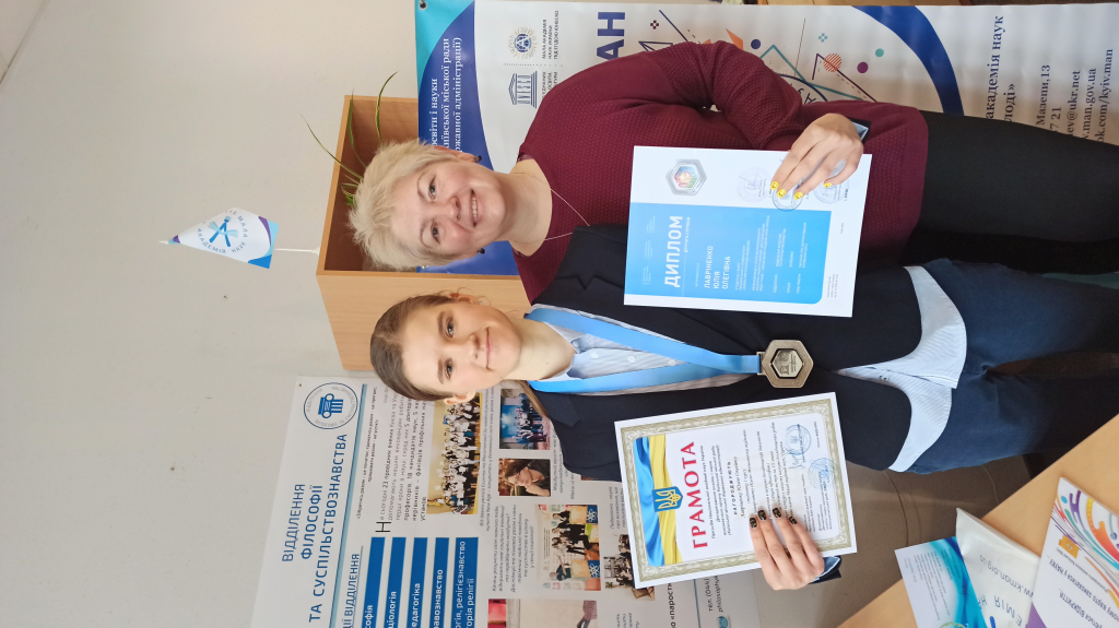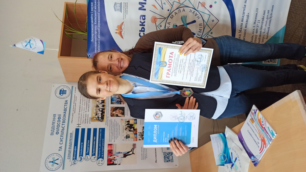 Наша гордість – випускники відділення: Дарія ВОЙТЮК – І місце у секції «Правознавство», Михайло ПЕЦЕЛЯ – ІІ місце у секції «Теологія, релігієзнавство та історія релігії», Юлія ЛАВРІНЕНКО – ІІ місце у секції «Філософія». Зараз вони вже студенти столичних університетів. А також Анастасія КИРИЧЕНКО, що посіла ІІ місце у секції «Педагогіка», яка навчається в 11 класі гімназії ІІ-ІІІ ступенів № 283 та продовжує свій науково-дослідний пошук.